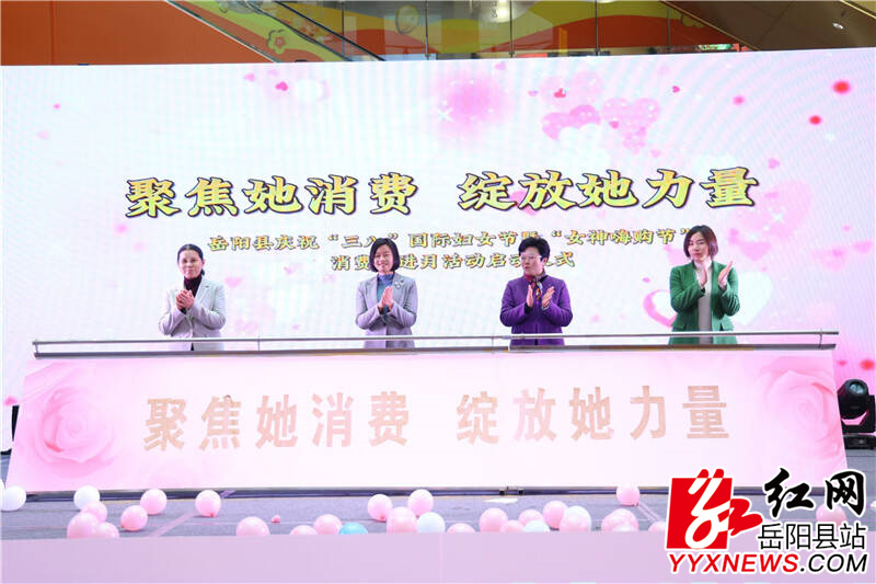 岳陽縣融媒體中心3月7日訊(記者 羅爽 周昱君)3月7日,我縣慶!叭恕眹H婦女節(jié)暨“女神嗨購節(jié)”消費促進月活動正式啟動?h委副書記、政法委書記宋華,縣人大常委會副主任彭碧芳,縣政協(xié)副主席彭榮欣,縣政協(xié)副主席、縣商糧局局長敖珊出席。