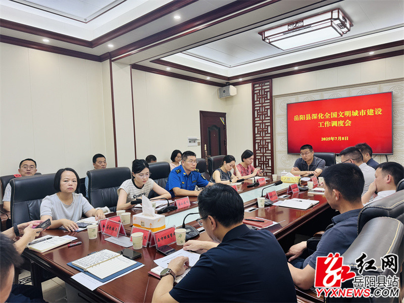 岳陽(yáng)縣融媒體中心7月8日訊(尹宇豪)7月8日,我縣召開(kāi)深化全國(guó)文明城市建設(shè)工作調(diào)度會(huì),縣委常委、宣傳部部長(zhǎng)張哲君主持并講話,縣政協(xié)副主席、縣商務(wù)糧食局局長(zhǎng)敖珊及相關(guān)部門(mén)和鄉(xiāng)鎮(zhèn)負(fù)責(zé)人參加。