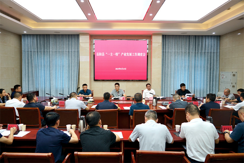 岳陽縣融媒體中心8月26日訊(羅爽 周星亮)8月25日,縣委書記肖湘暉主持召開全縣“一主一特”產(chǎn)業(yè)發(fā)展工作調(diào)度會,聽取我縣醫(yī)藥健康、現(xiàn)代農(nóng)業(yè)和綠色食品加工產(chǎn)業(yè)的發(fā)展情況,研究工作思路、推進舉措,就下步工作進行安排部署。他強調(diào),要立足資源稟賦、產(chǎn)業(yè)基礎(chǔ),發(fā)揮自身優(yōu)勢,統(tǒng)籌推進強鏈延鏈補鏈,以更大力度、更實舉措推動“一主一特”產(chǎn)業(yè)提質(zhì)增效、發(fā)展壯大,為縣域高質(zhì)量發(fā)展注入強勁動能?h委副書記、縣長吳光文出席并講話,縣委常委、縣委辦主任王靖,縣委常委、副縣長賀立參加。
