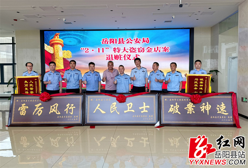 岳陽縣融媒體中心8月27日訊(周昱君)7月24日,縣公安局舉行“2.11特大盜竊金店案”退贓儀式,將破案追回的3100余克、總價(jià)值284萬元的170件黃金飾品集中返還受害金店。副縣長、縣公安局局長劉斌清出席儀式。