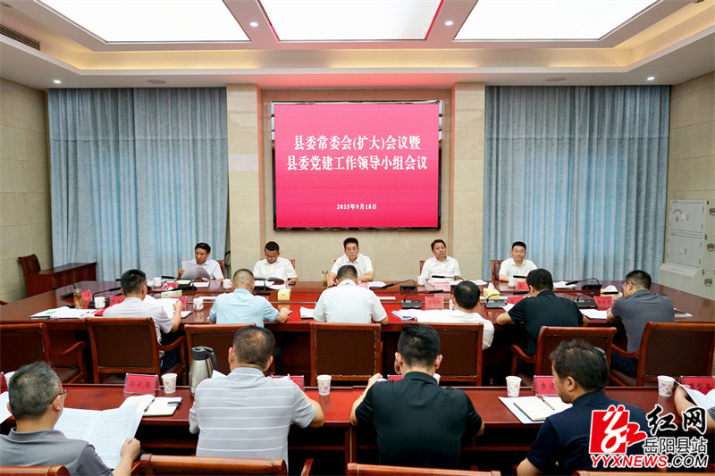 岳陽(yáng)縣融媒體中心9月19日訊(羅爽 周星亮 )9月18日,縣委書(shū)記肖湘暉主持召開(kāi)縣委常委會(huì)(擴(kuò)大)會(huì)議暨縣委黨建工作領(lǐng)導(dǎo)小組會(huì)議,傳達(dá)學(xué)習(xí)習(xí)近平總書(shū)記重要講話和中央黨的建設(shè)工作領(lǐng)導(dǎo)小組會(huì)議精神以及省委、市委相關(guān)會(huì)議精神,對(duì)我縣學(xué)習(xí)教育工作進(jìn)行總結(jié),就鍥而不舍落實(shí)中央八項(xiàng)規(guī)定精神,推進(jìn)作風(fēng)建設(shè)常態(tài)化長(zhǎng)效化做出部署。縣委副書(shū)記、縣長(zhǎng)吳光文及其他縣委常委會(huì)組成人員出席,縣委黨建工作領(lǐng)導(dǎo)小組成員單位主要負(fù)責(zé)同志參加。