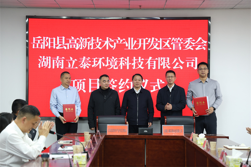 岳陽縣融媒體中心12月23日訊(尹宇豪 張帆)12月22日,縣高新技術(shù)產(chǎn)業(yè)開發(fā)區(qū)與湖南立泰環(huán)境科技有限公司舉行MOFs材料規(guī)模化生產(chǎn)及成型應(yīng)用項目簽約儀式。縣委副書記、縣長吳光文,岳陽興長石化股份有限公司總經(jīng)理付鋒,黨委書記鄒海波出席簽約儀式。副縣長劉煬主持簽約儀式。