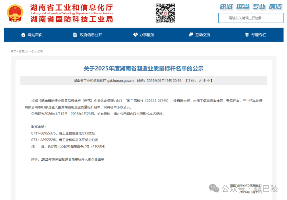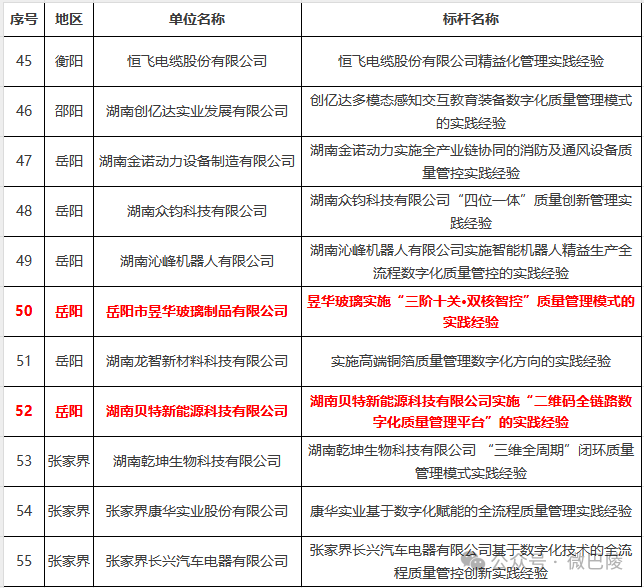 《關(guān)于2025年度湖南省制造業(yè)質(zhì)量標(biāo)桿名單的公示》