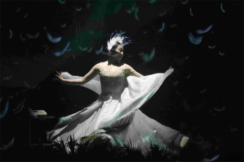 在“老漁村博物館”,蓑衣、漁網(wǎng)等老物件靜靜陳列,配合360度環(huán)幕投影技術(shù),當日光晨霧在數(shù)字技術(shù)營造的村落灑下金輝,白鸛在稻田上空翱翔,觀眾仿佛穿越時空,親歷漁村變遷?萍寂c藝術(shù)的完美結(jié)合,讓生態(tài)文明故事變得可感可觸。
