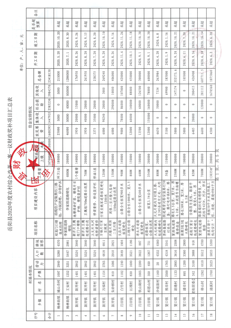 岳陽縣2020年度農(nóng)村綜合改革一事一議財政獎補項目匯總表公開