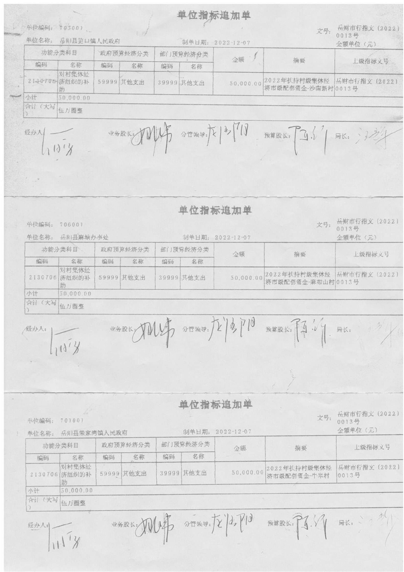岳陽市財(cái)政局關(guān)于下達(dá)2022年扶持村級(jí)集體經(jīng)濟(jì)市級(jí)配套資金的通知(岳財(cái)行指〔2022〕13號(hào))及撥付單
