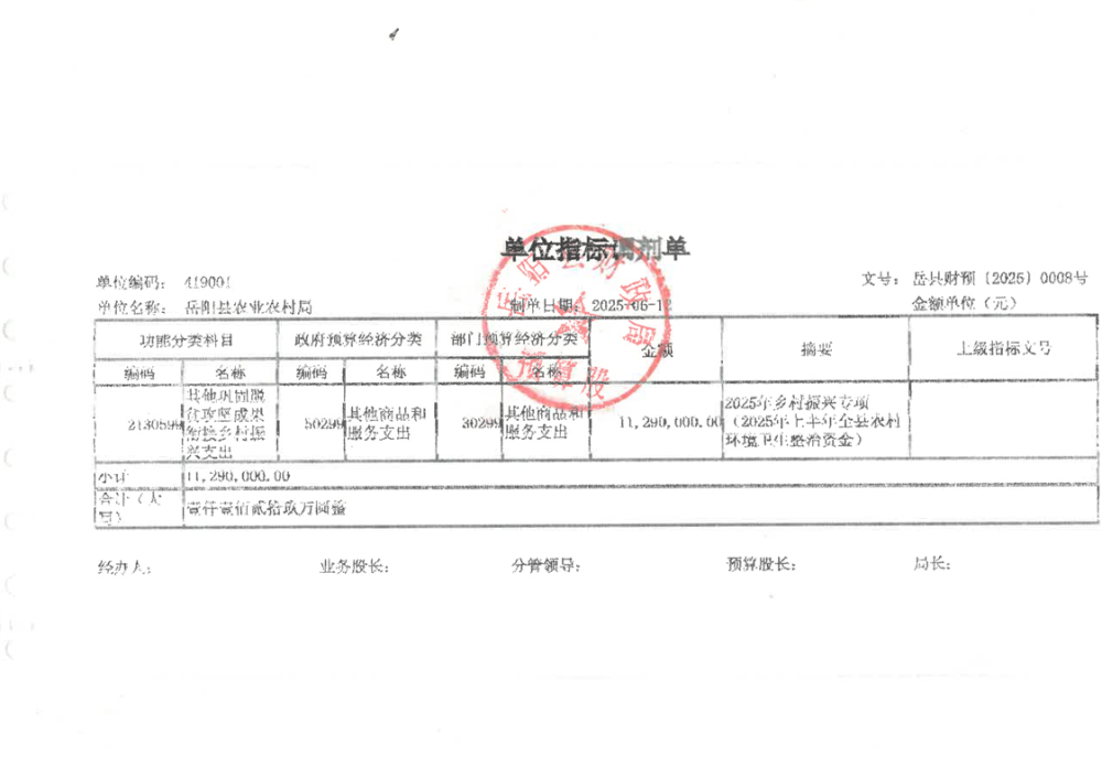 2025年上半年全縣農(nóng)村環(huán)境衛(wèi)生整治資金