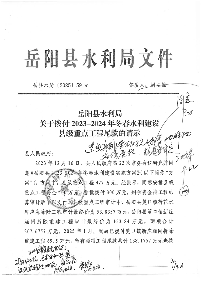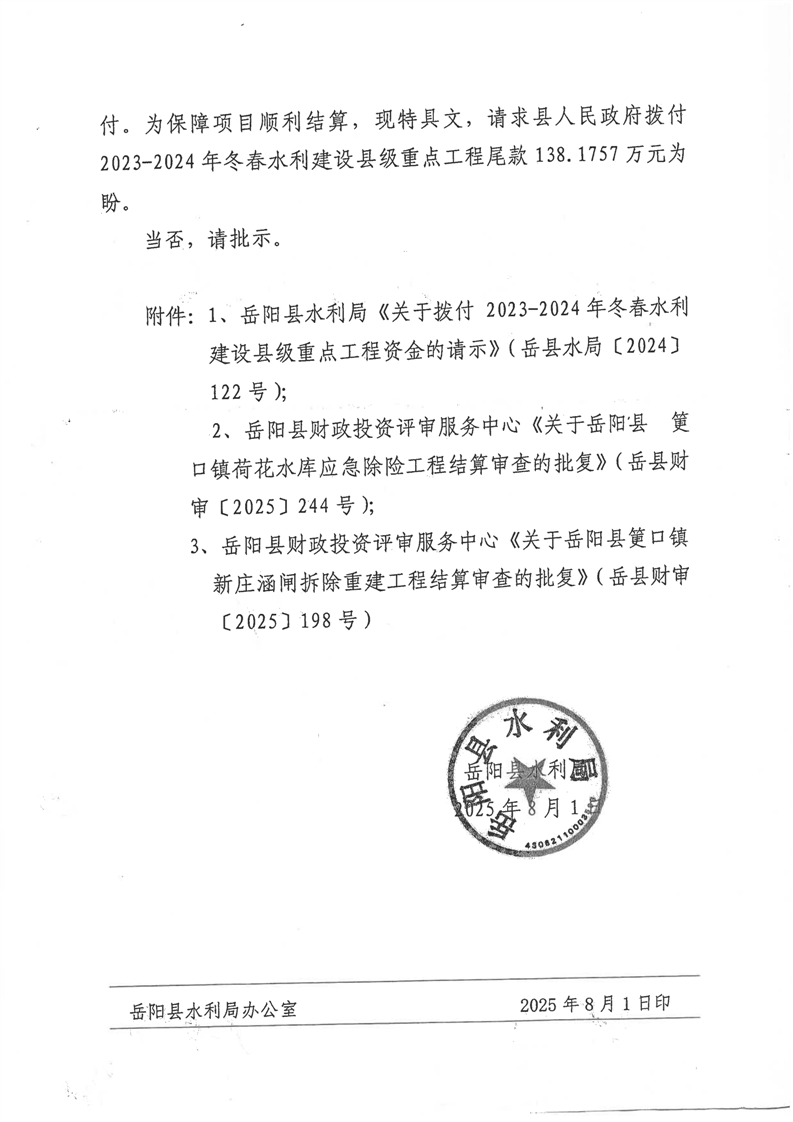 冬春水利建設(shè)縣級(jí)重點(diǎn)工程資金