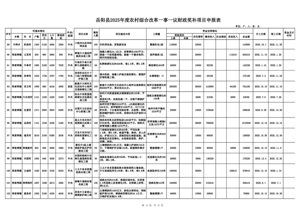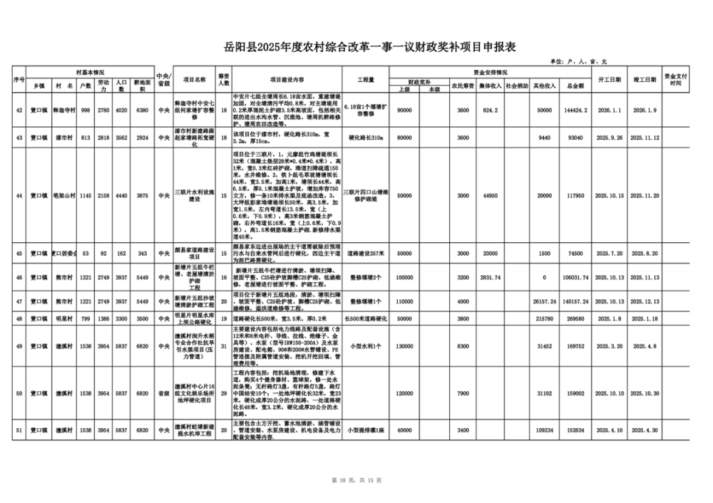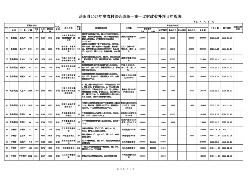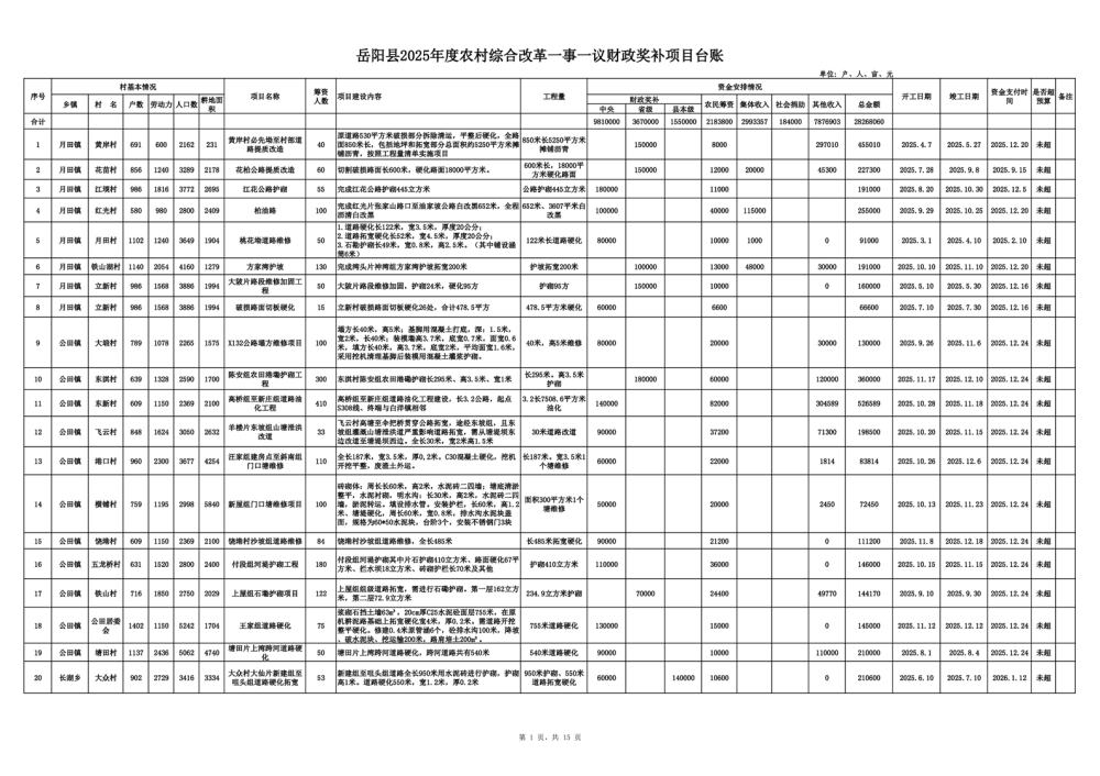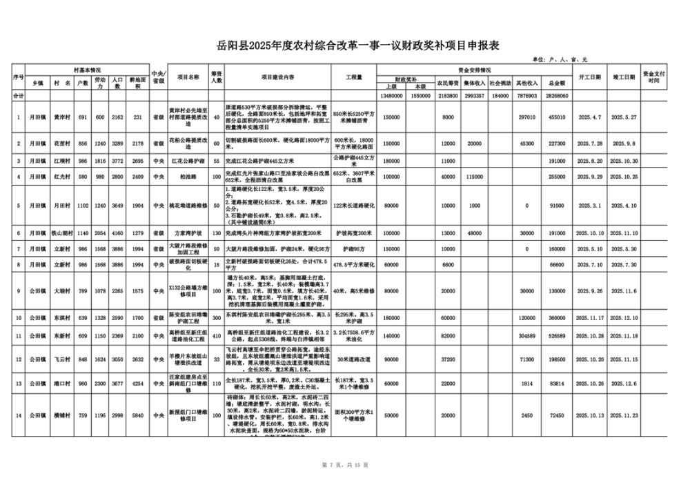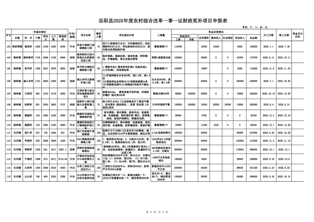 岳陽縣2025年農(nóng)村綜全改革一事一議財(cái)政獎(jiǎng)補(bǔ)項(xiàng)目臺(tái)賬