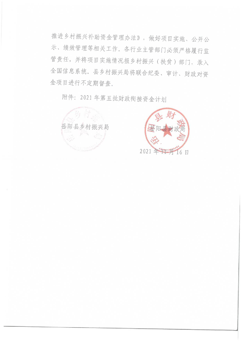 岳陽縣財政局2021年關(guān)于下達(dá)第五批財政銜接推進(jìn)鄉(xiāng)村振興資金及績效目標(biāo)批復(fù)公開公示