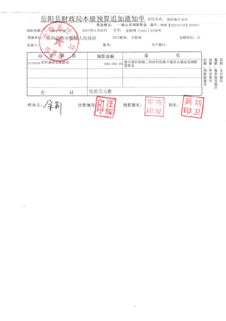 岳陽縣下達(dá)本級(jí)財(cái)政銜接推進(jìn)鄉(xiāng)村振興黃沙街鎮(zhèn)三和村村民集中建房點(diǎn)基礎(chǔ)設(shè)施配套資金公開公示