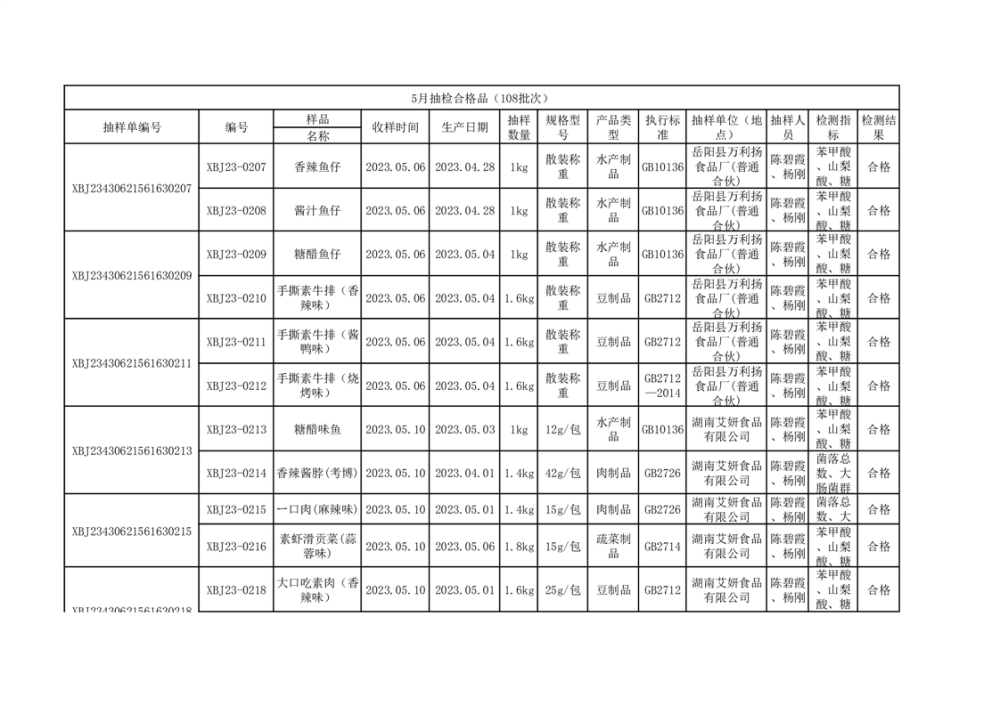 2023年5月抽檢合格品(108批次)