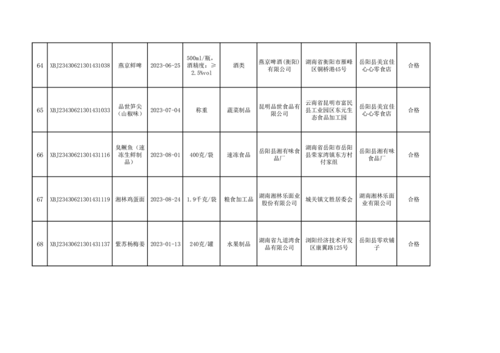 2023年普通食品監(jiān)督抽檢情況公示(100批次)