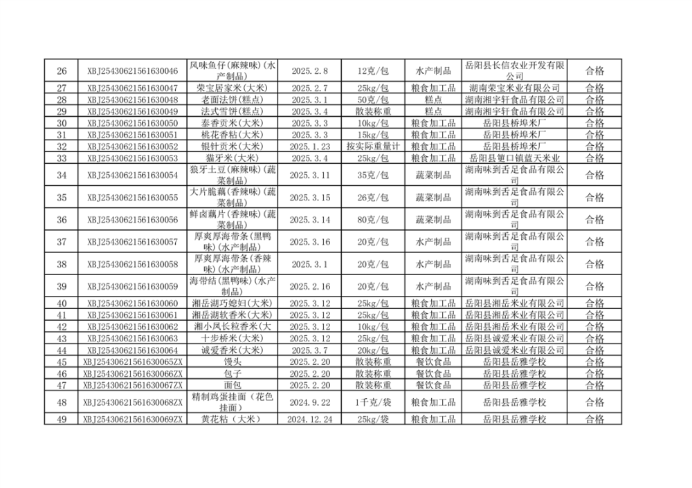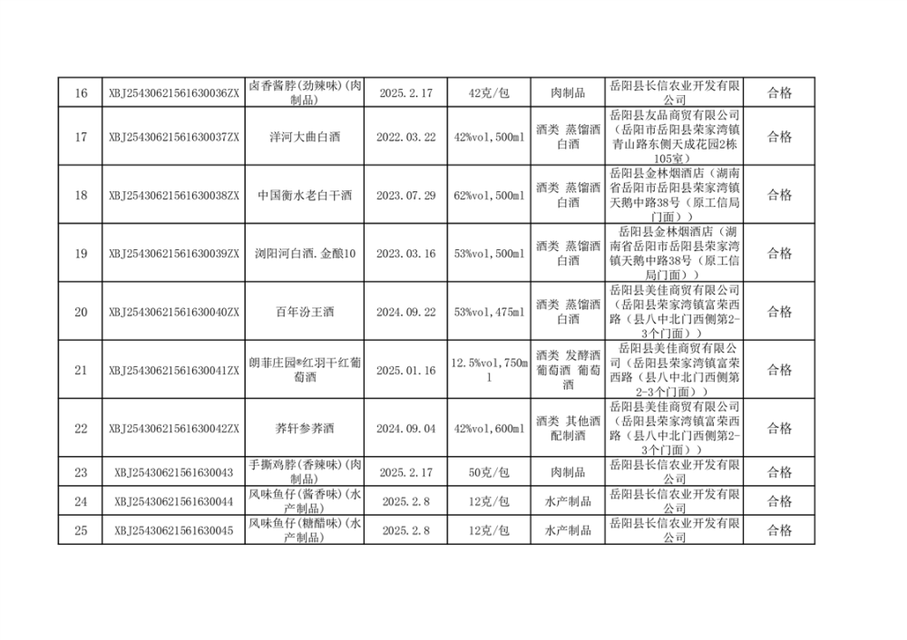 2025年岳陽(yáng)縣市場(chǎng)監(jiān)督管理局食品監(jiān)督抽檢信息公示(2025年4月30日)