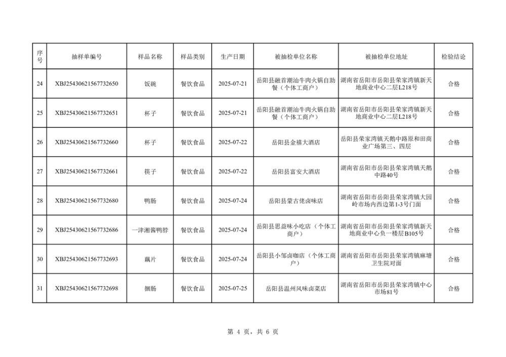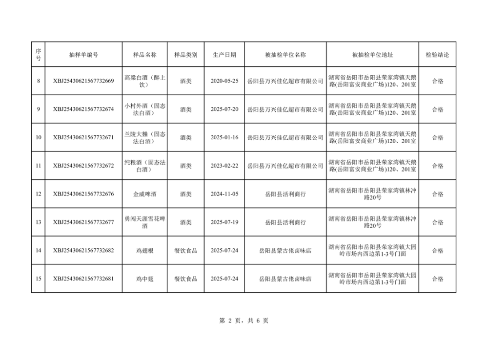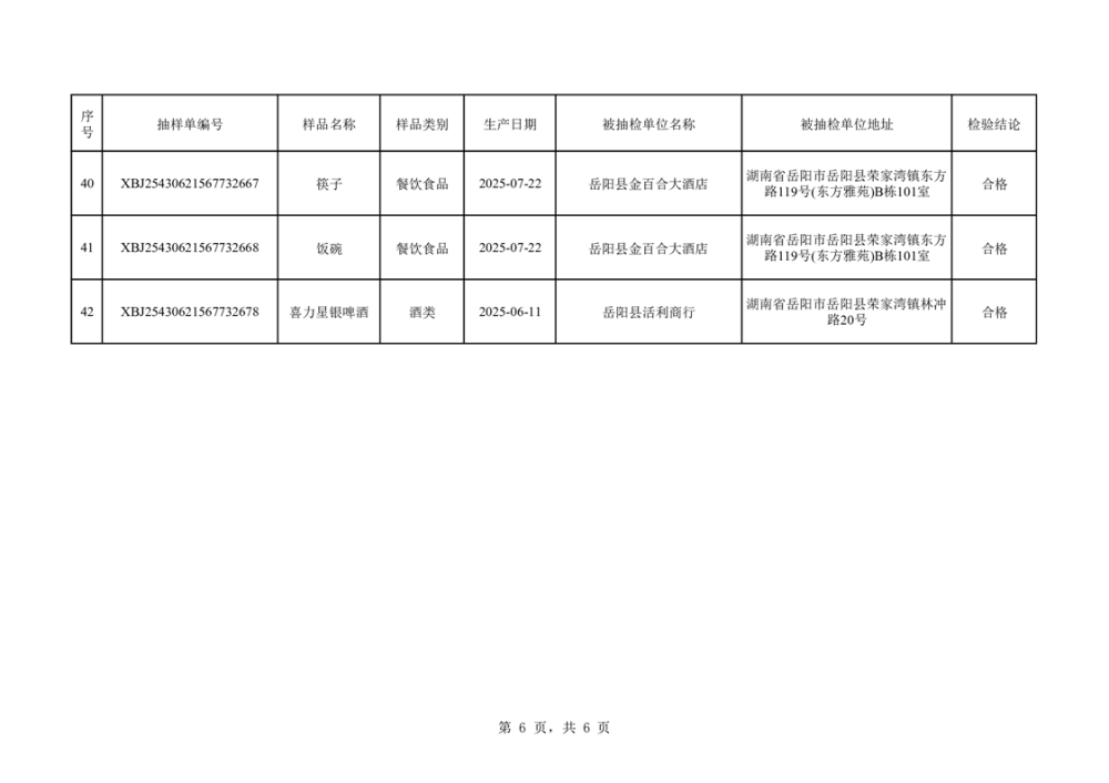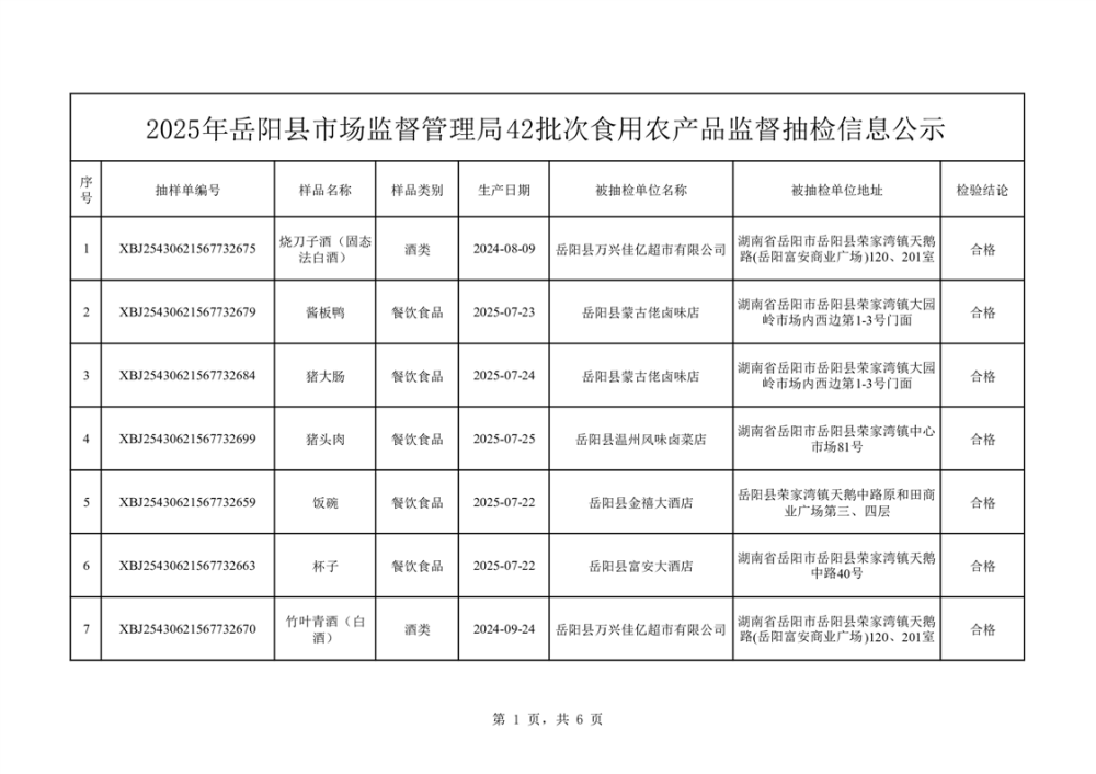 2025年10月14日抽檢數(shù)據(jù)公示(合格42批次)