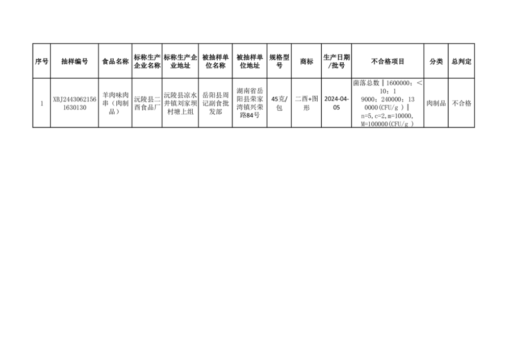 2024年9月26日食品抽檢數(shù)據(jù)公示(不合格1批次)