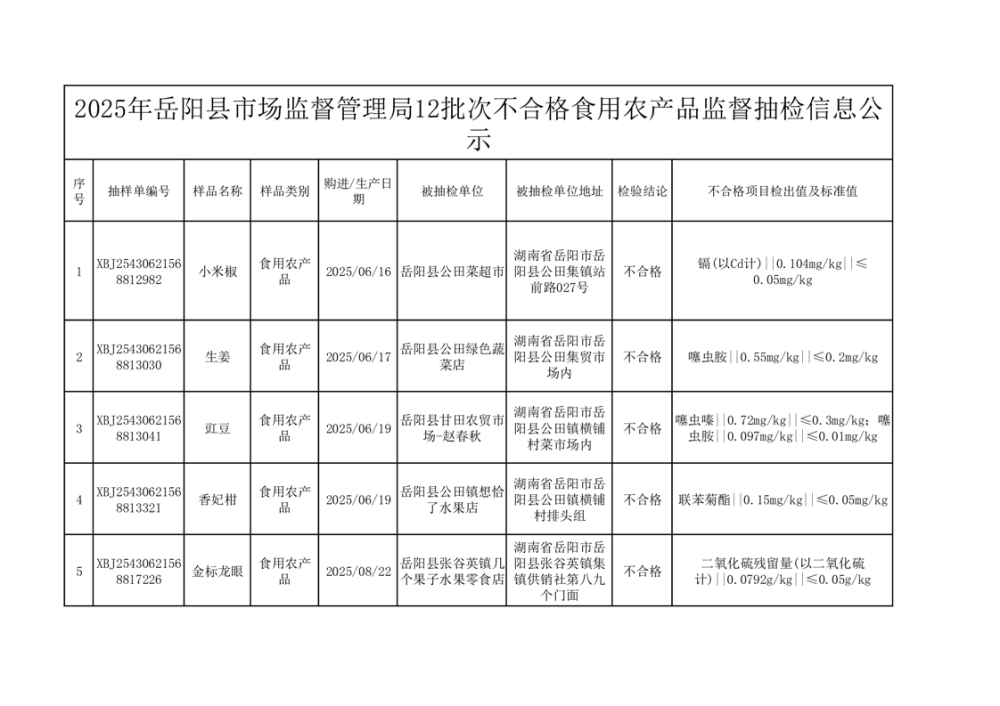 2025年10月15日抽檢數(shù)據(jù)公示(不合格12批次)