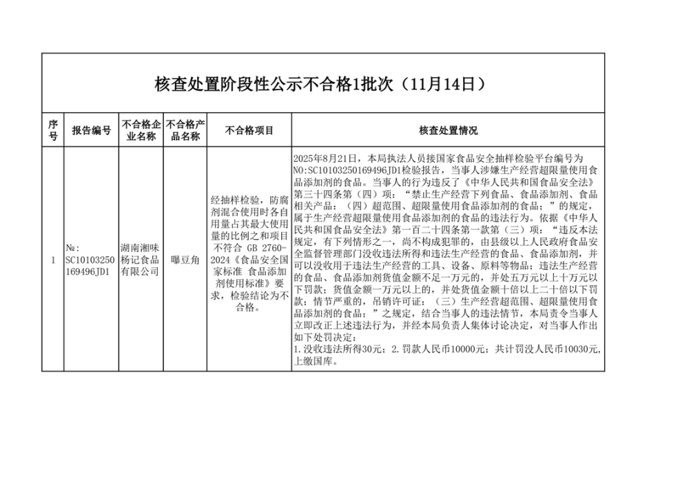 核查處置階段性信息公示(2025年11月14日)