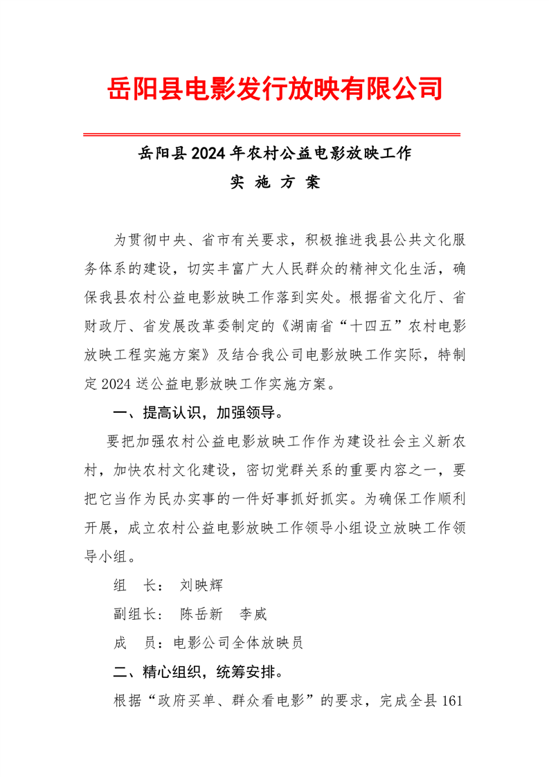 岳陽縣2024年農(nóng)村公益電影放映工作施方案