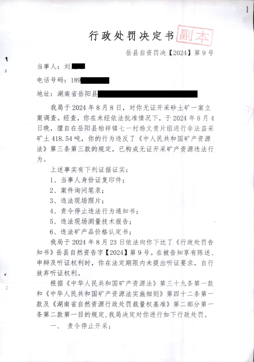 行政處罰決定書 岳縣自然資罰決(2024)第9號