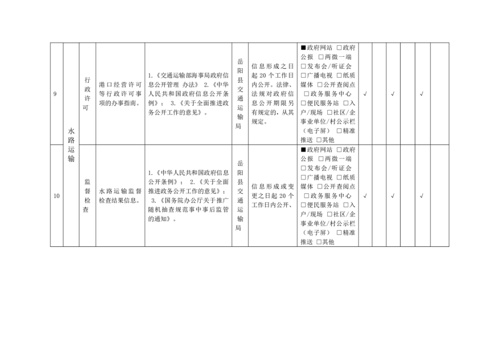 岳陽縣交通運(yùn)輸領(lǐng)域基層政務(wù)公開事項(xiàng)目錄