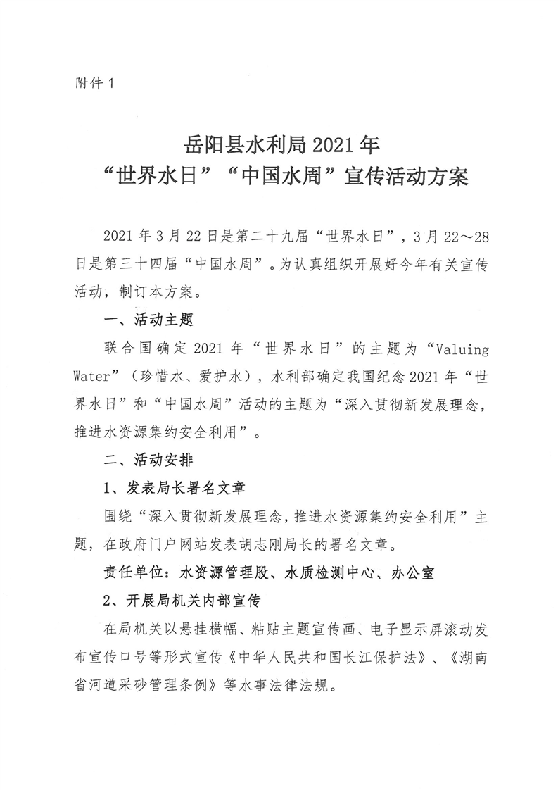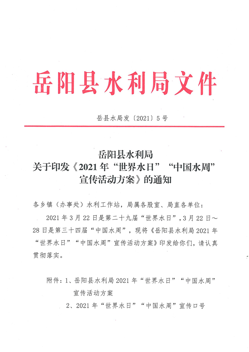 岳陽縣水利局關(guān)于印發(fā)《2021年“世界水日”“中國水周”宣傳活動(dòng)方案》的通知
