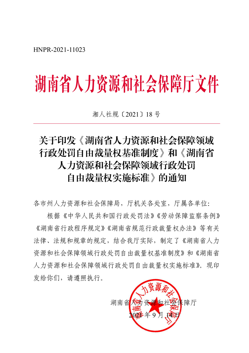 《湖南省人力資源和社會保障領(lǐng)域行政處罰自由裁量權(quán)基準(zhǔn)制度》和《湖南省人力資源和社會保障領(lǐng)域行政處罰自由裁量權(quán)實施標(biāo)準(zhǔn)》