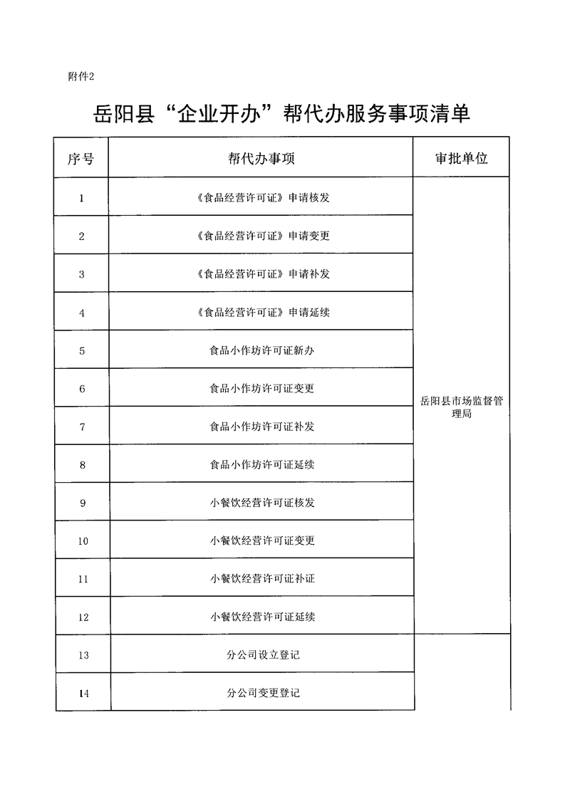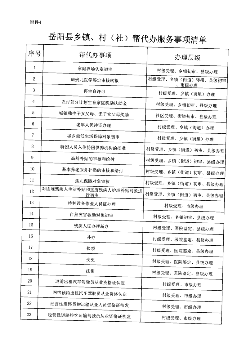 跑改辦:岳陽縣幫代辦服務(wù)事項清單