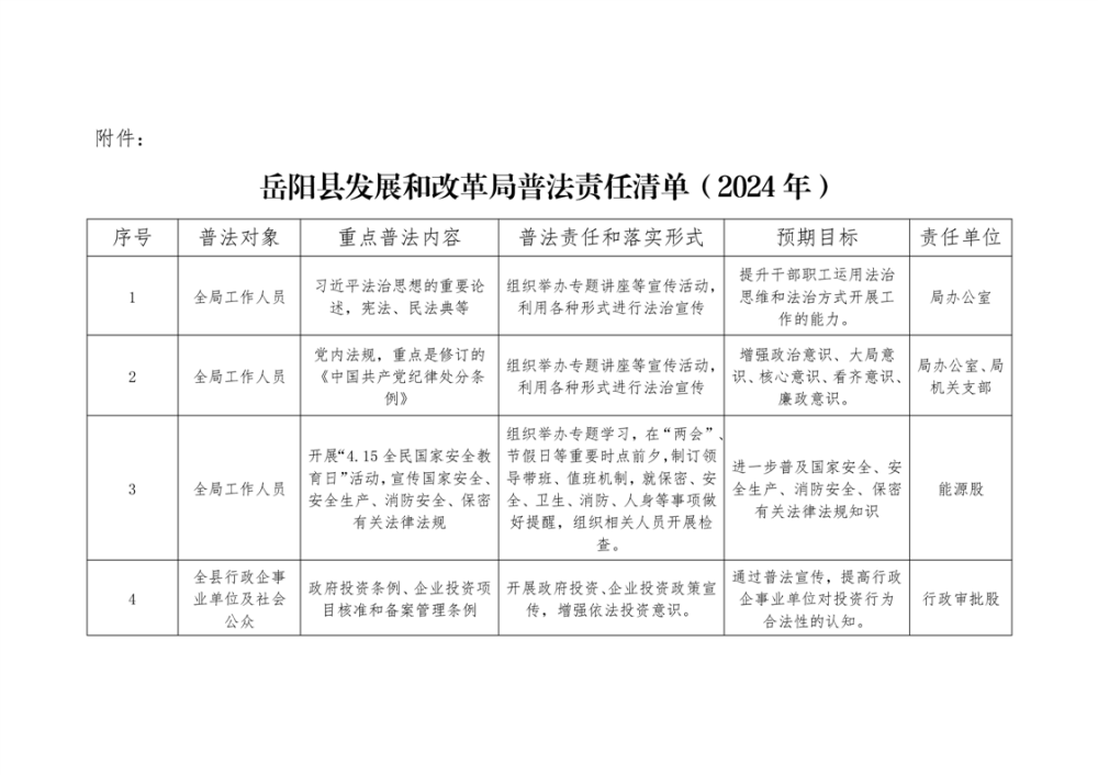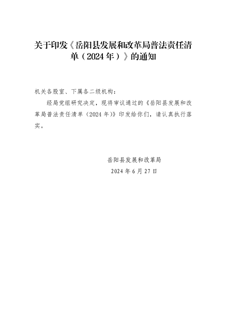 關(guān)于印發(fā)《岳陽縣發(fā)展和改革局普法責(zé)任清單(2024年)》的通知