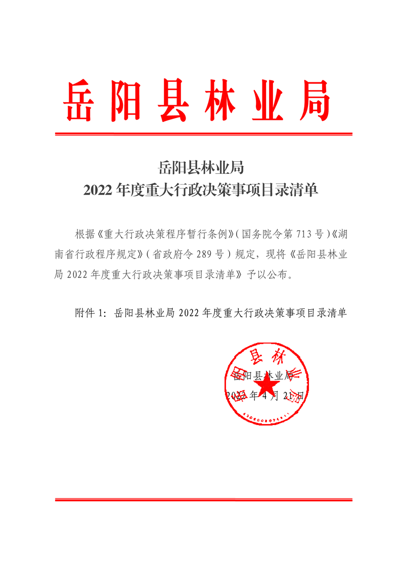 岳陽(yáng)縣林業(yè)局2022年重大行政決策目錄