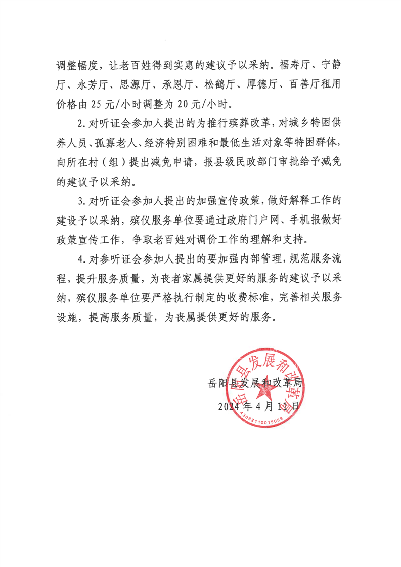關(guān)于岳陽縣殯葬服務(wù)價格調(diào)整聽證會的聽證報(bào)告
