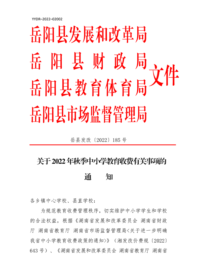 關(guān)于2022年秋季中小學(xué)教育收費有關(guān)事項通知