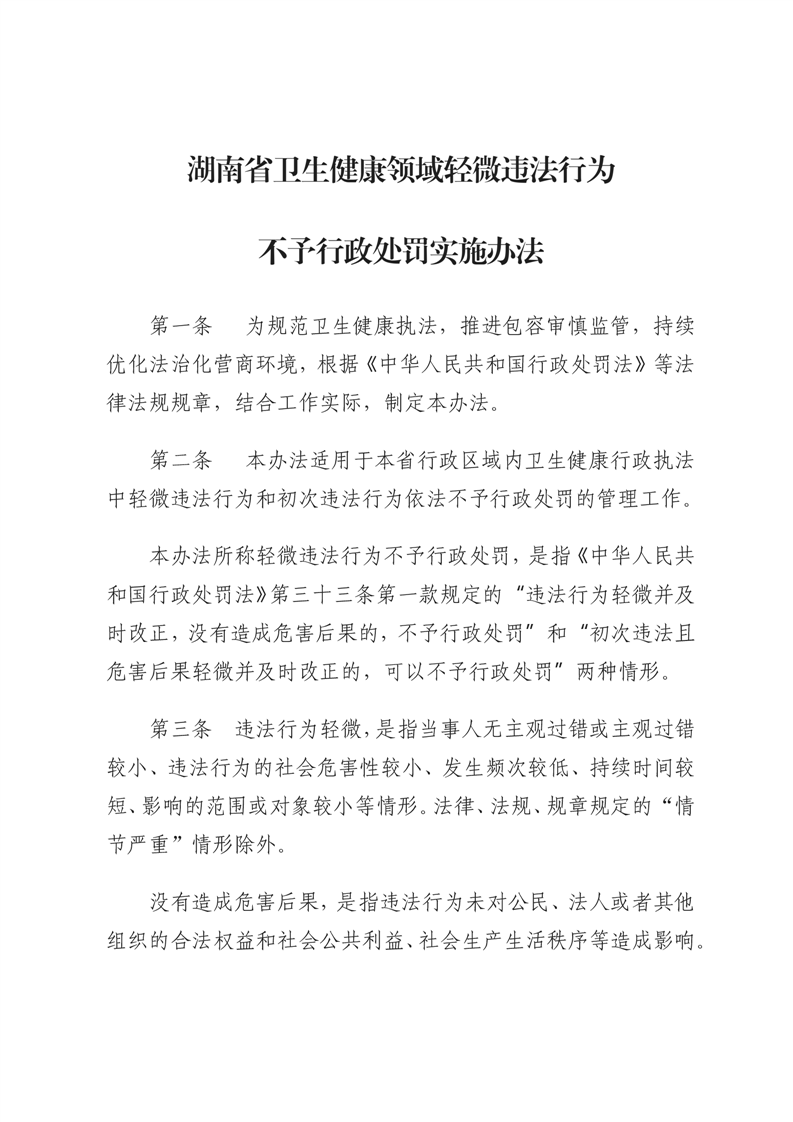 湖南省衛(wèi)生健康領(lǐng)域輕微違法行為不予行政處罰實施辦法