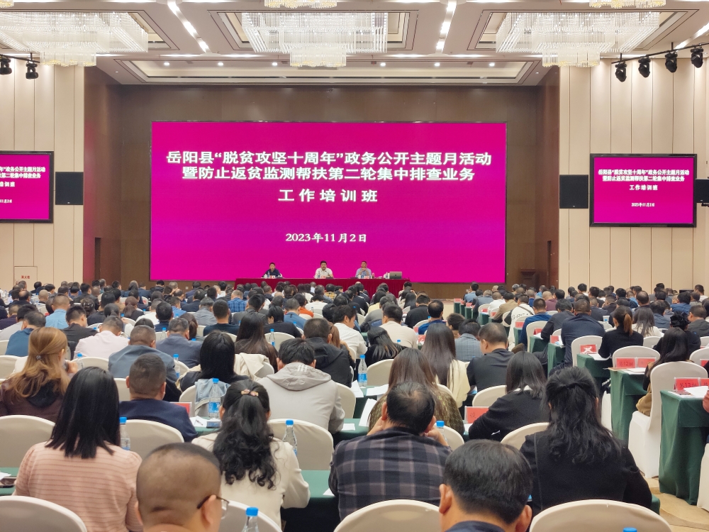 11月2日,舉辦全縣“脫貧攻堅十周年”政務公開主題月活動暨防止返貧監(jiān)測幫扶第三輪集中排查業(yè)務工作培訓,含鎮(zhèn)村干部、駐村干部在內(nèi)的430余人參加培訓。