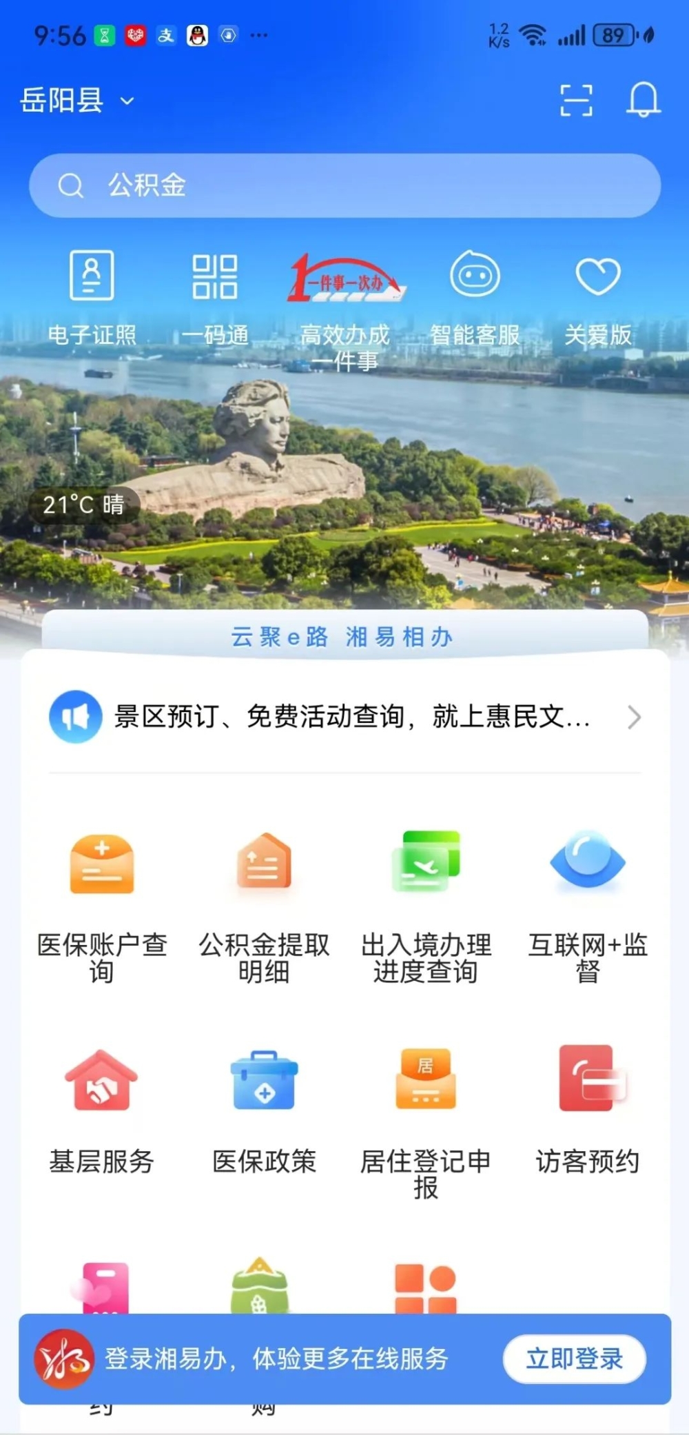 進入APP界面后,向下滑動,點擊“市州專區(qū)”→選擇岳陽市→點擊”前往”