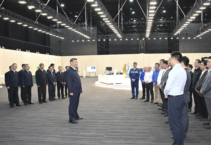 10月17日至18日,中共中央總書記、國家主席、中央軍委主席習近平在安徽考察。這是17日下午,習近平在合肥濱湖科學城察看安徽省重大科技創(chuàng)新成果集中展示。新華社記者 謝環(huán)馳 攝