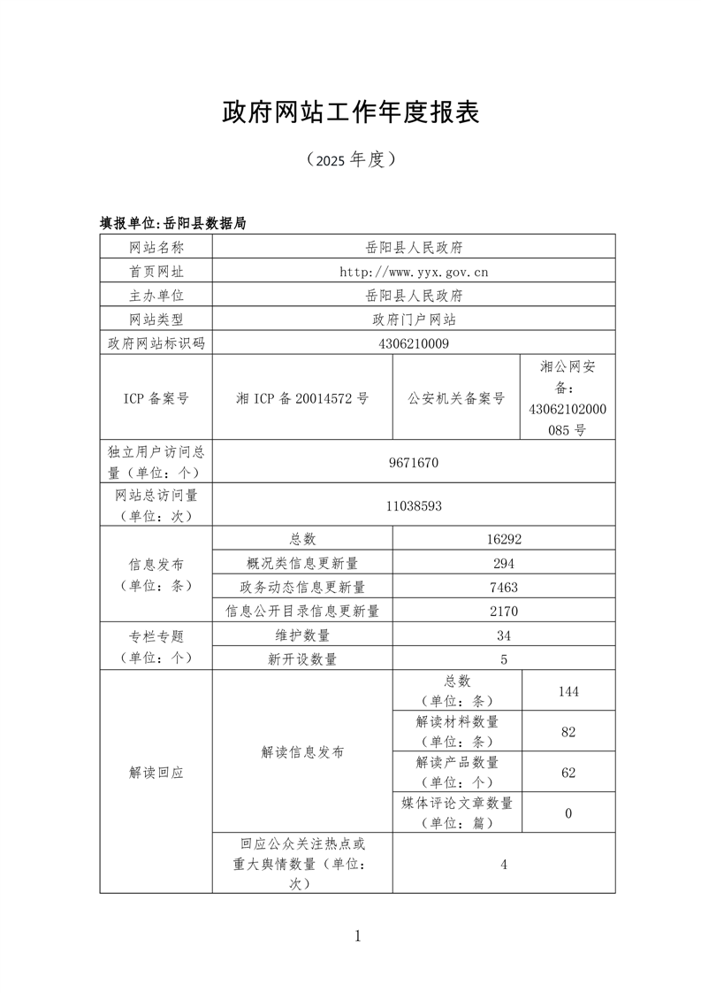 2025年度岳陽縣政府網(wǎng)站工作年度報表