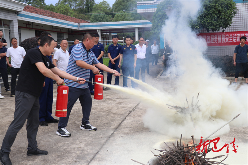 培訓(xùn)中,消防大隊蔣傳洋同志以典型案例為切入點,圍繞常見的火源、常見的隱患、如何做好民政服務(wù)機構(gòu)管理工作、如何逃生五個方面展開系統(tǒng)講解授課。隨后,消防隊員現(xiàn)場演示了干粉滅火器的正確使用方法,包括檢查壓力表、拔掉保險銷、握住噴管、對準火焰根部噴射等操作步驟,并指導(dǎo)參訓(xùn)人員進行滅火器實操訓(xùn)練,確保能熟練掌握滅火技能。
