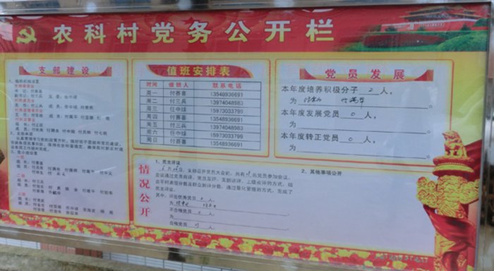 農科村黨務村務公開欄