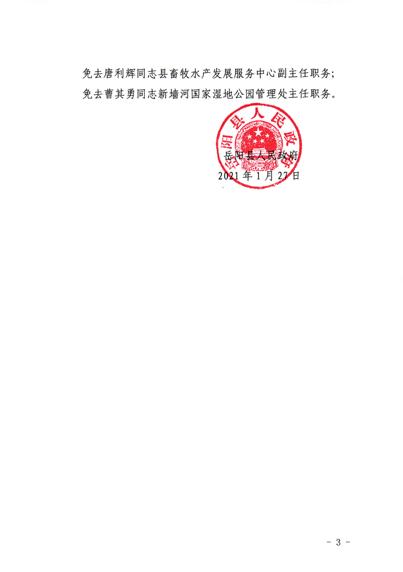 岳陽縣人民政府關(guān)于馮高平等同志職務(wù)任免的通知