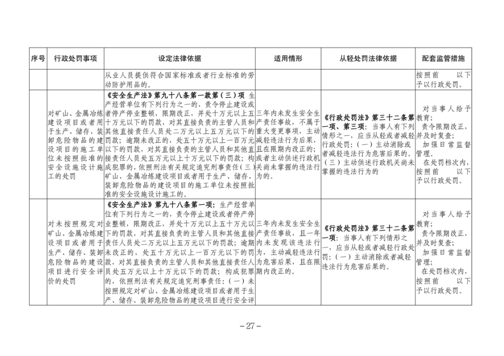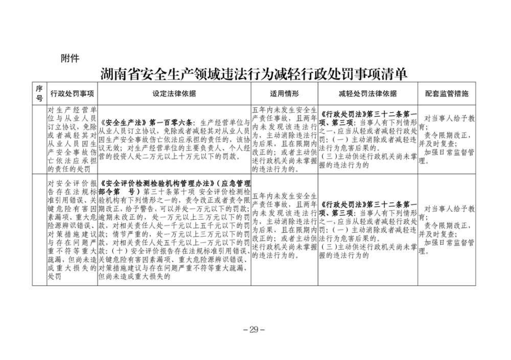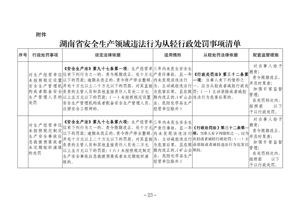 湖南省安全生產(chǎn)領(lǐng)域違法行為予行政處罰從輕行政處罰減輕行政處罰不予行政強(qiáng)制事項(xiàng)清單