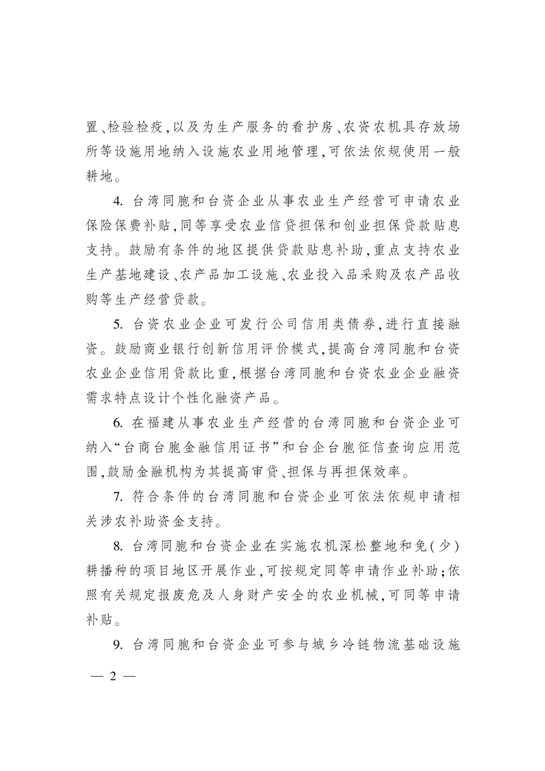 《關(guān)于支持臺(tái)灣同胞臺(tái)資企業(yè)在大陸農(nóng)業(yè)林業(yè)領(lǐng)域發(fā)展的若干措施》涉農(nóng)政策解析