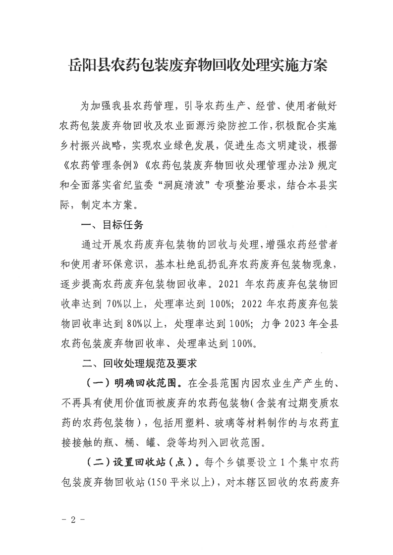 岳陽縣農(nóng)藥包裝廢棄物回收處理實施方案