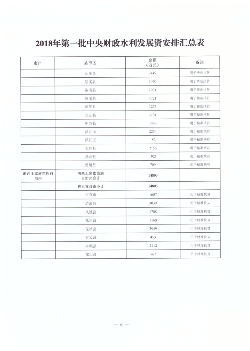 2018年第一批中央水利發(fā)展資金計(jì)劃