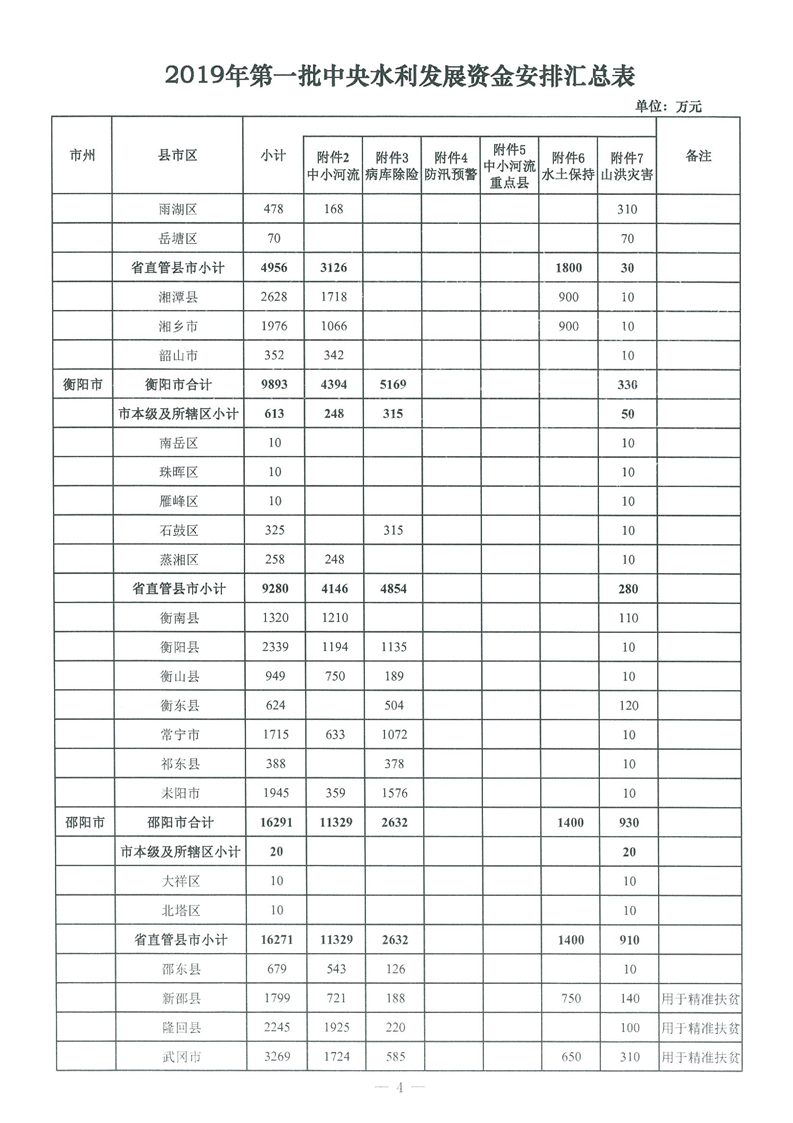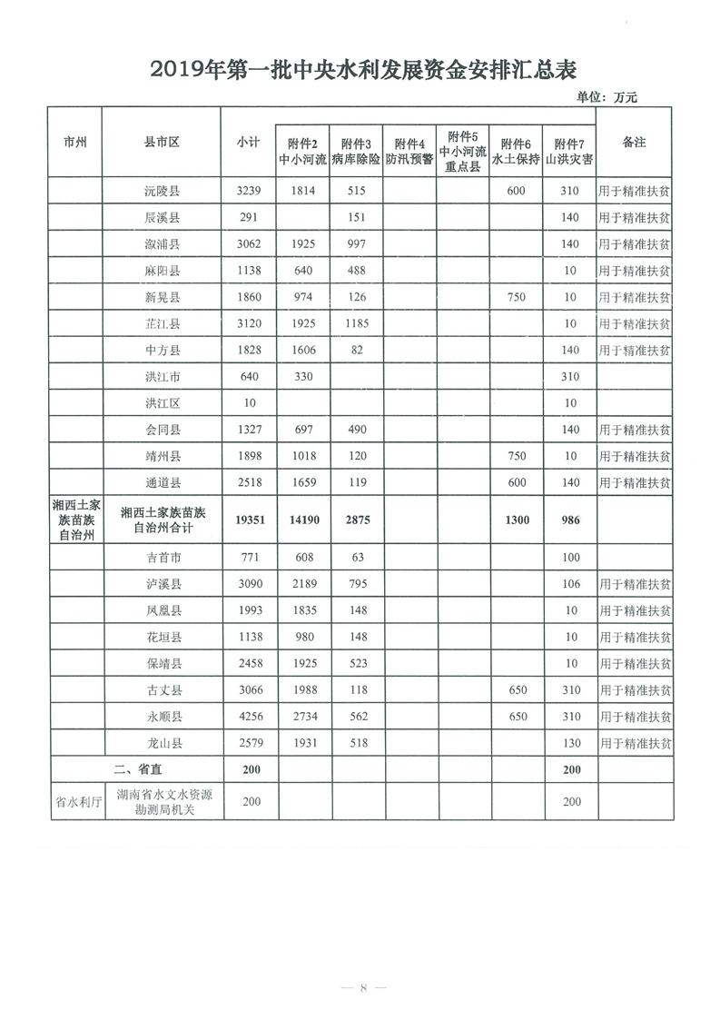 2019年第一批中央水利發(fā)展資金安排表(湘財(cái)農(nóng)指2018年117號(hào)附件)