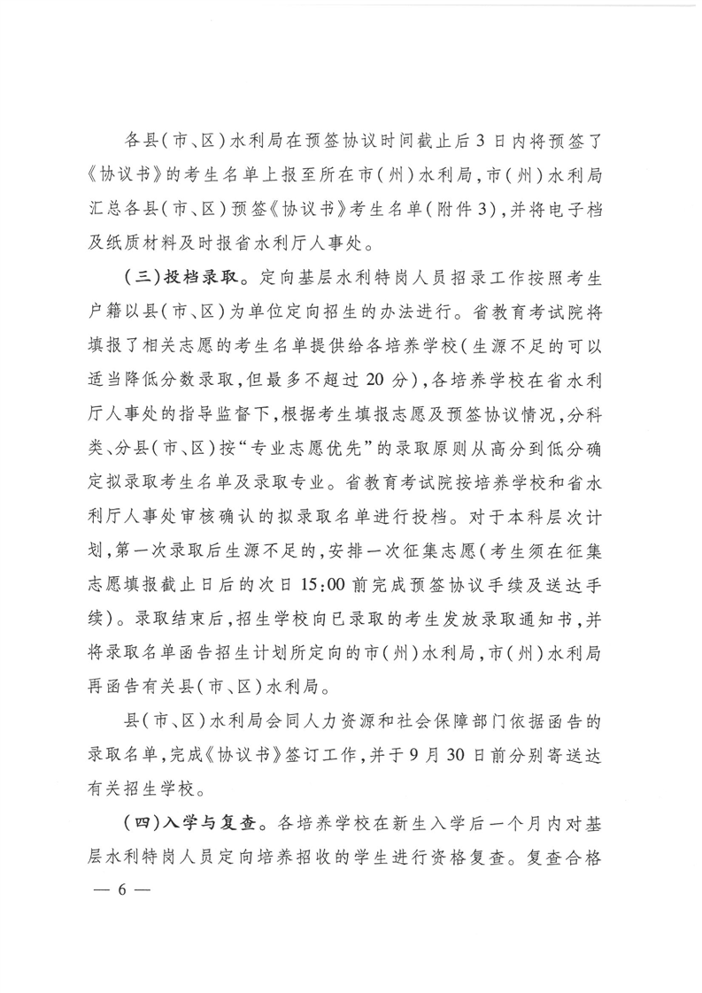 湖南省《關(guān)于做好基層水利特崗人員定向培養(yǎng)工作的通知》