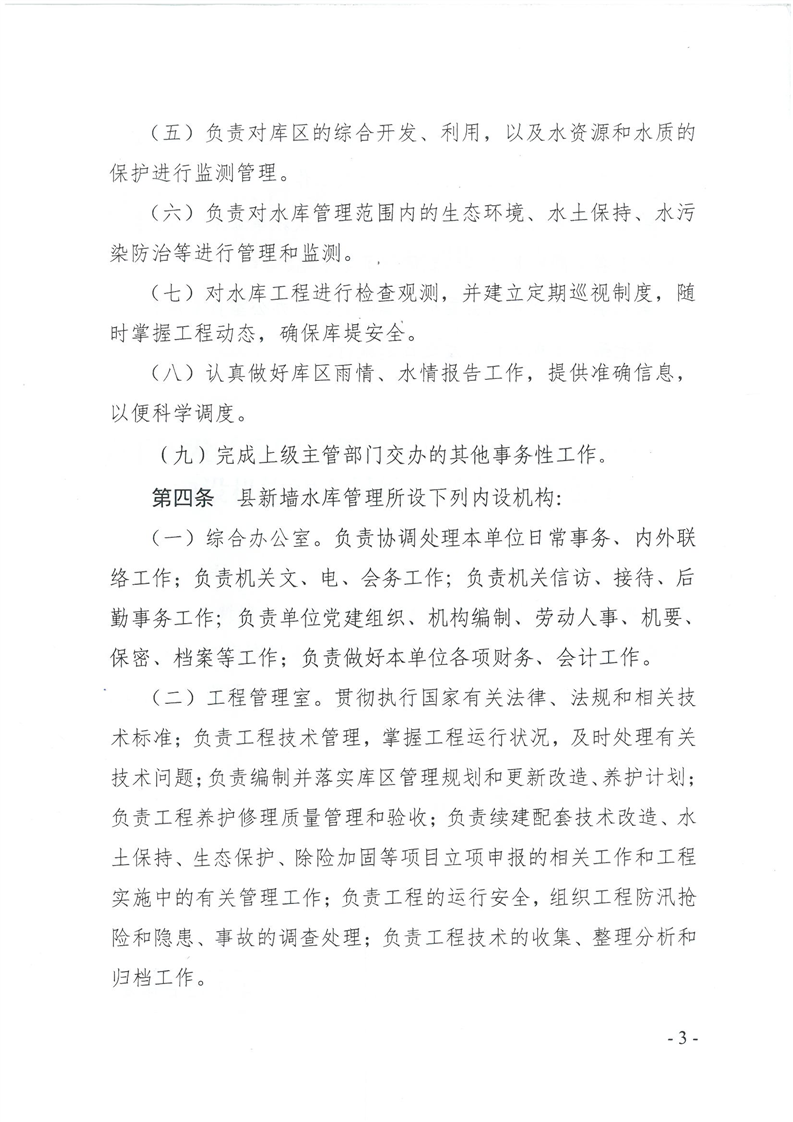 岳陽縣新墻水庫管理所職能配置、內(nèi)設機構和人員編制規(guī)定