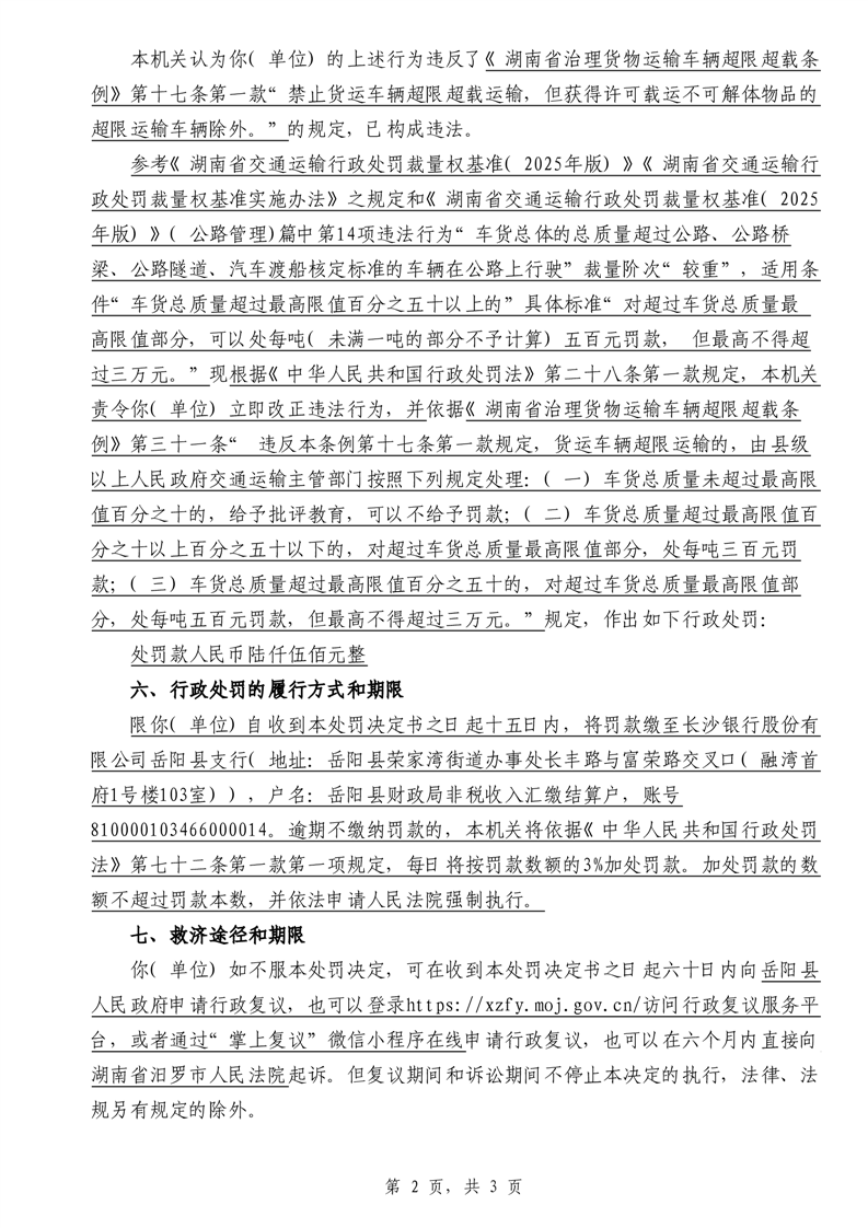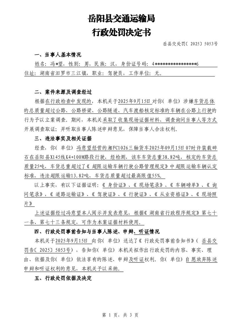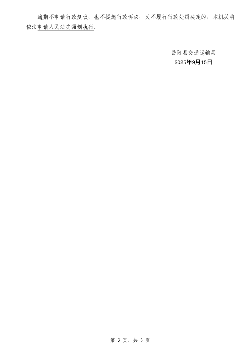 行政處罰決定書 岳縣交處罰〔2025〕5053號