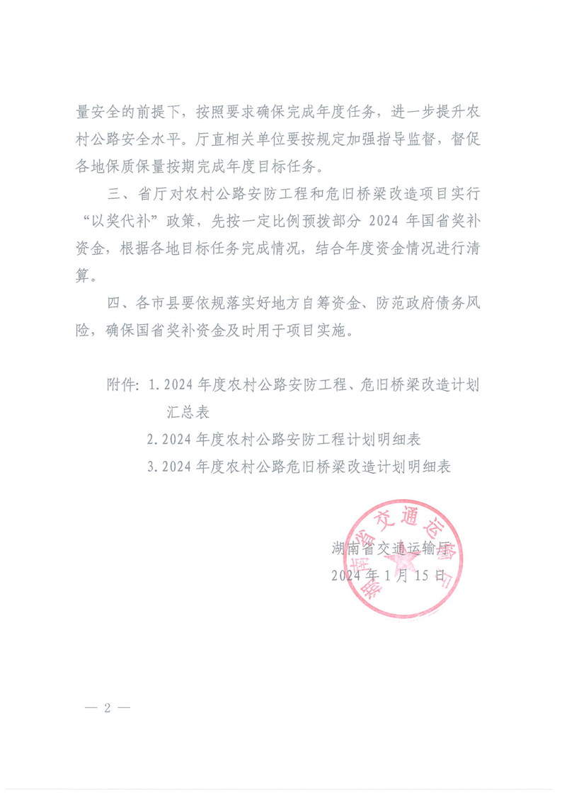 關于下達2024年度農村公路安防工程(第一批)和危舊橋梁改造計劃的通知