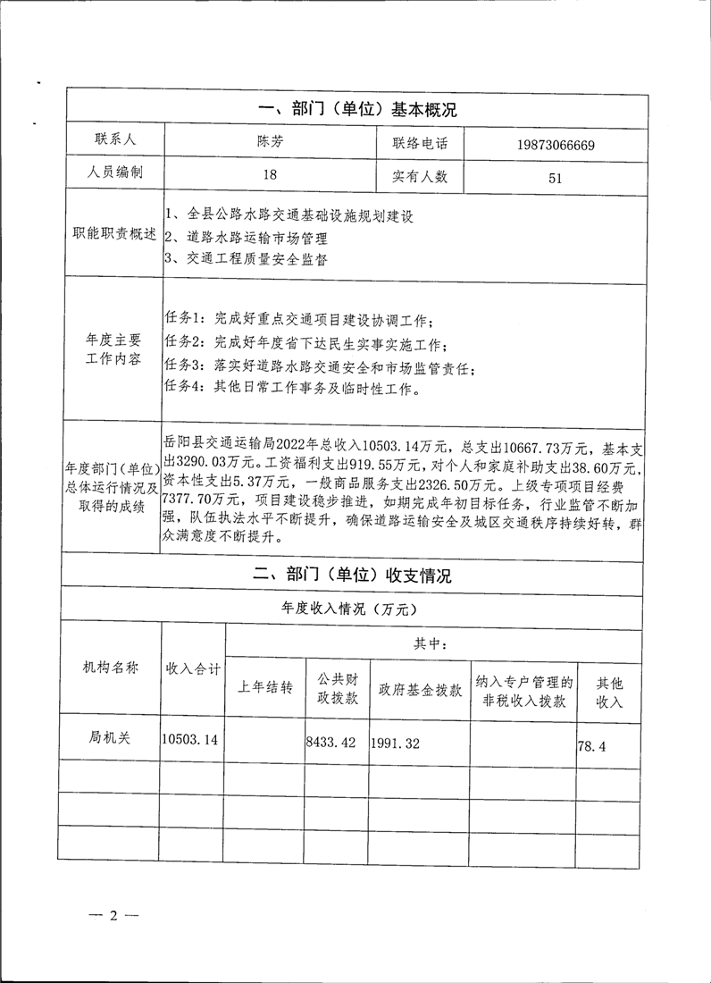 岳陽(yáng)縣交通運(yùn)輸局2022年度整體支出績(jī)效自評(píng)報(bào)告